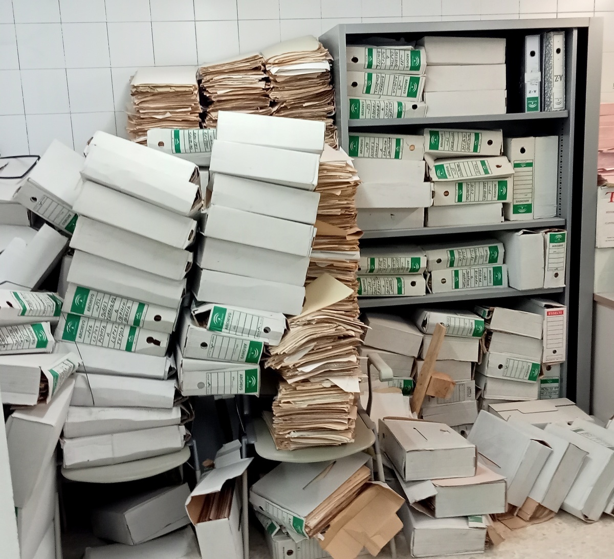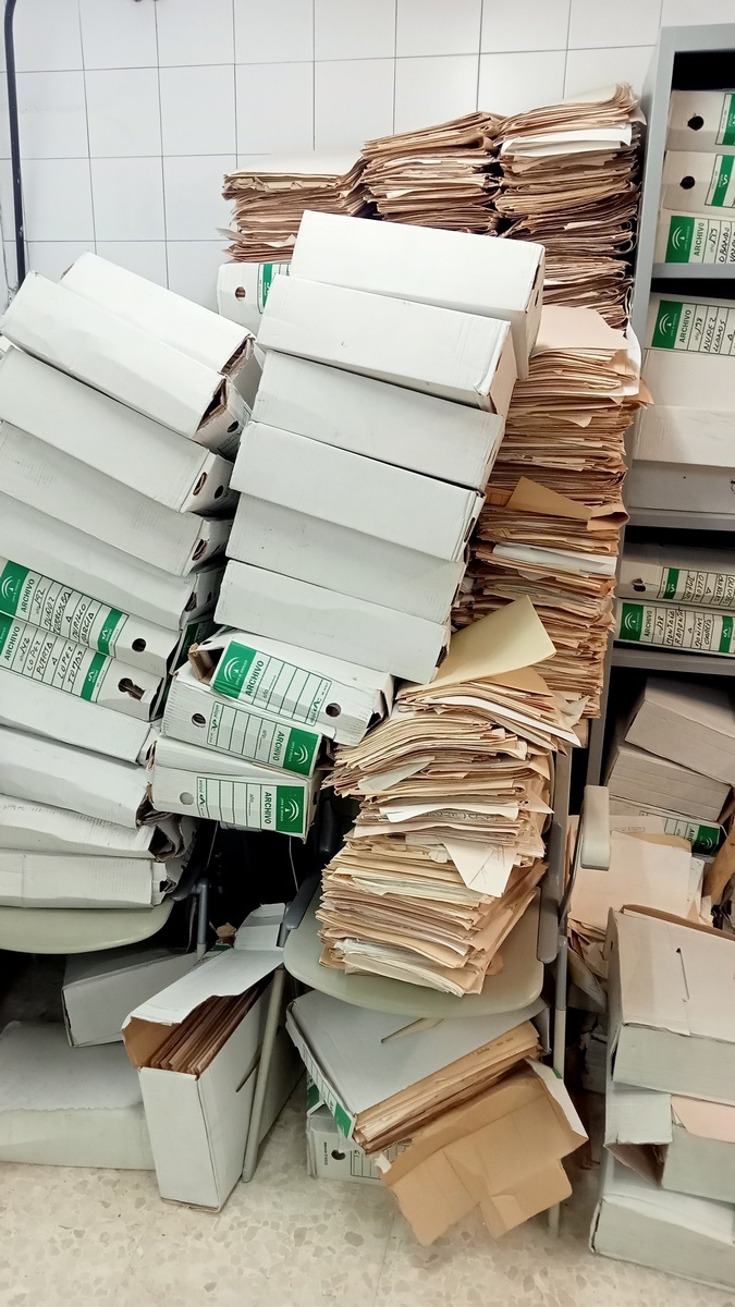 En este caso, se puede decir que tal documentación ha sido recuperada del olvido y del abandono. Formaba parte de un material acumulado desde hacía años en el depósito de dicha institución oficial, en cajas y expedientes sueltos, junto con papeles revueltos, amontonados sin orden, tras una evacuación de urgencia de una nave situada a las afueras de la ciudad –a la que habían sido llevados con anterioridad–, con motivo de un incendio que se había producido en la misma.