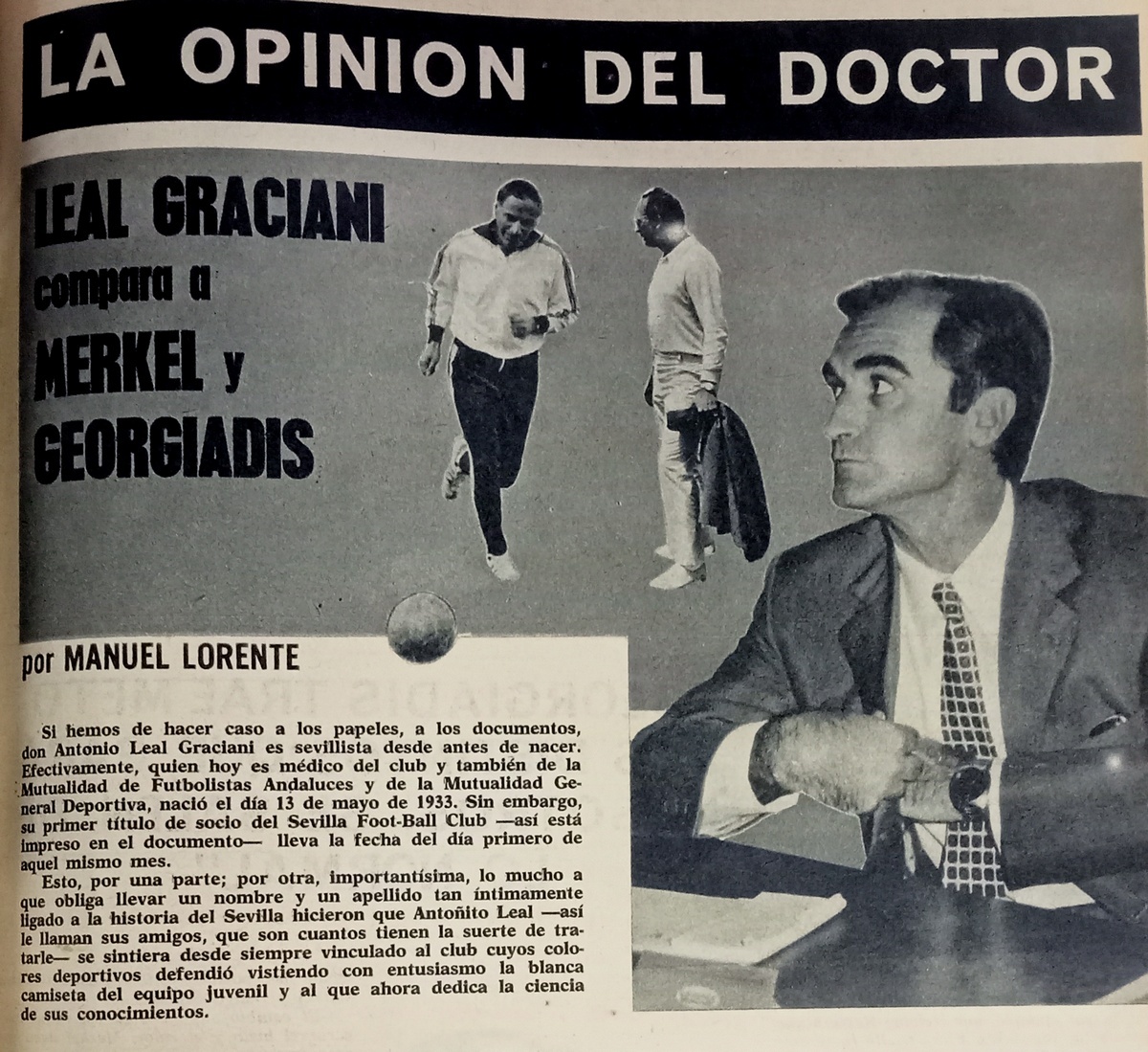 (13) «La opinión del doctor. Leal Graciani compara a Merkel y Georgiadis», por Manuel Lorente, en Sevillismo, nº 7, octubre 1971, págs. 5-6.